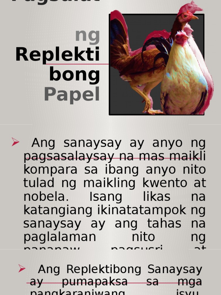 Home current Explore Explore All. Kahulugan ng Replektibong Sanaysay. 1 on a question.