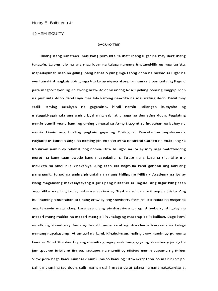 BAGUIO TRIP Bilang isang kabataan nais kong pumunta sa ibat ibang lugar na may ibat ibang tanawin. Save When You Book Your Flight Hotel Together At Travelocity. Iba ang kalalabasan ng isang Lakbay-Sanaysay na isinulat ng isang guro sa isinulat ng isang mag-aaral.