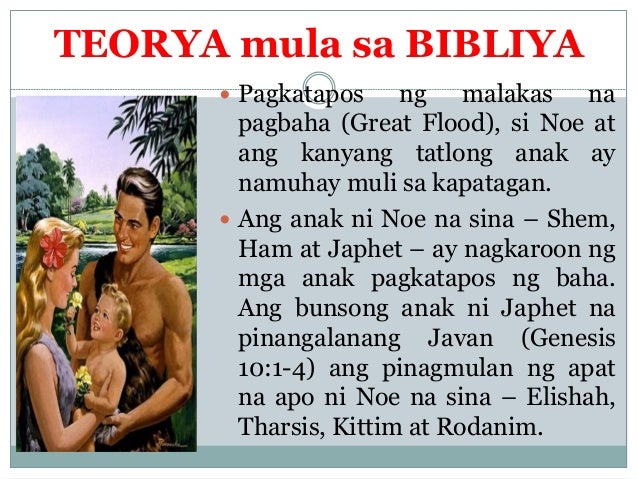 Ang Pinagmulan ng lahing Pilipino Mga Ibat - ibang Teorya ng Pinag mulan ng Lahing Pilipino Layunin Upang malaman natin ang ibat ibang teorya ng pinagmulan ng mga sinaunang Pilipino ayon sa mga dalubhasa. Ang bawat kapuluan ay pinagdurugtong ng mga anyong tubig sa paligid nito. Ito ay naglalaman ng mahahalagang kaisipan at nasa isang mabisang ayos ng pagkakasunud-sunod upang lubos na maunawaan ng bumabasa.