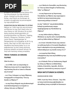 MGA UNANG BAYANI NG WIKANG PAMBANSA. Wika Kultura at Lipunang Pilipino sa Panahon ng Impormasyon. Nakasaad doon ang Filipino as the National Language 1935 ngunit itinatanong ng ilan.