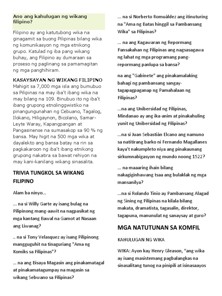 Ito ang Atas Tagapagpaganap na naglalayong magamit ang Filipino sa opisyal na mga transaksiyon. Mga Bayani ng Ating Lahi. Paglingon sa Ugat ng Komisyon sa Wikang Filipino.